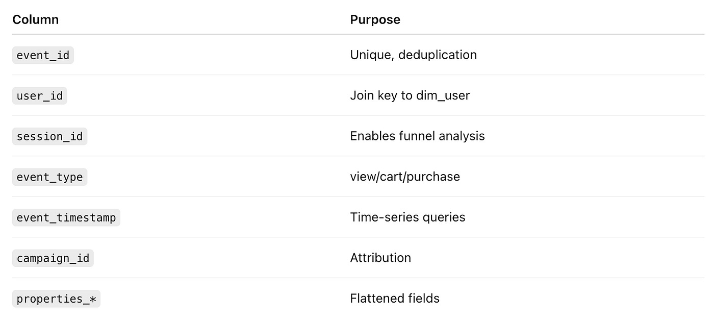 For key datasets (e.g., fact_events, funnel_daily), we publish: